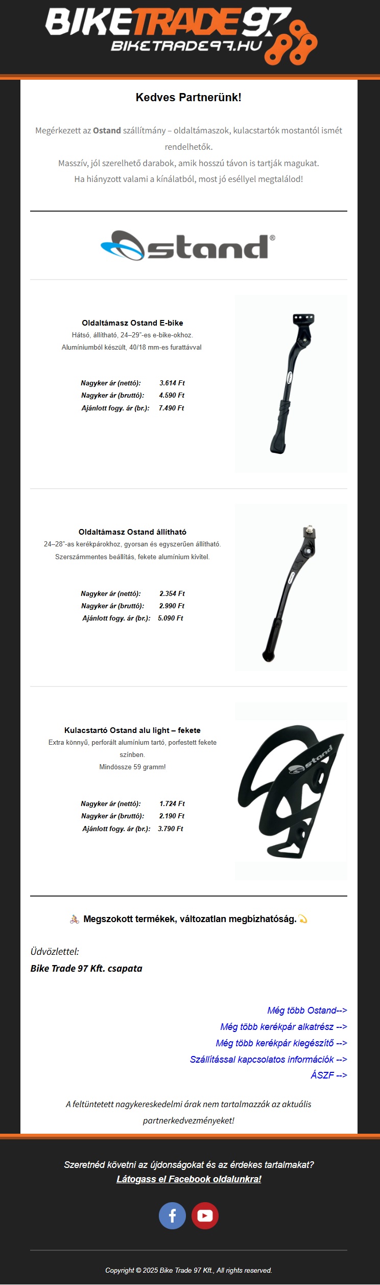 Megérkezett az Ostand szállítmány – oldaltámaszok, kulacstartók mostantól ismét rendelhetők. Masszív, jól szerelhető darabok, amik hosszú távon is tartják magukat. Ha hiányzott valami a kínálatból, most jó eséllyel megtalálod!
