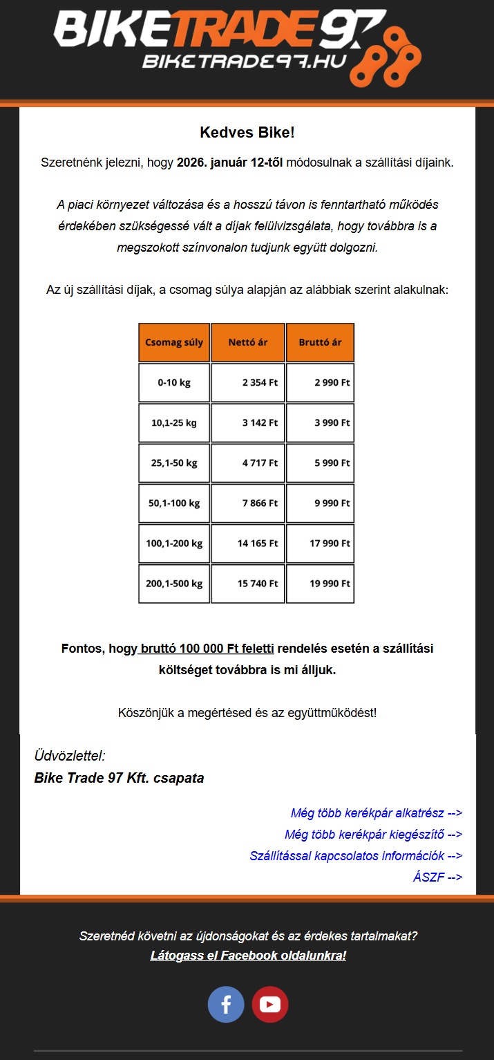 2026. január 12-től módosulnak a szállítási díjaink, és az ingyenes kiszállítás értékhatára!