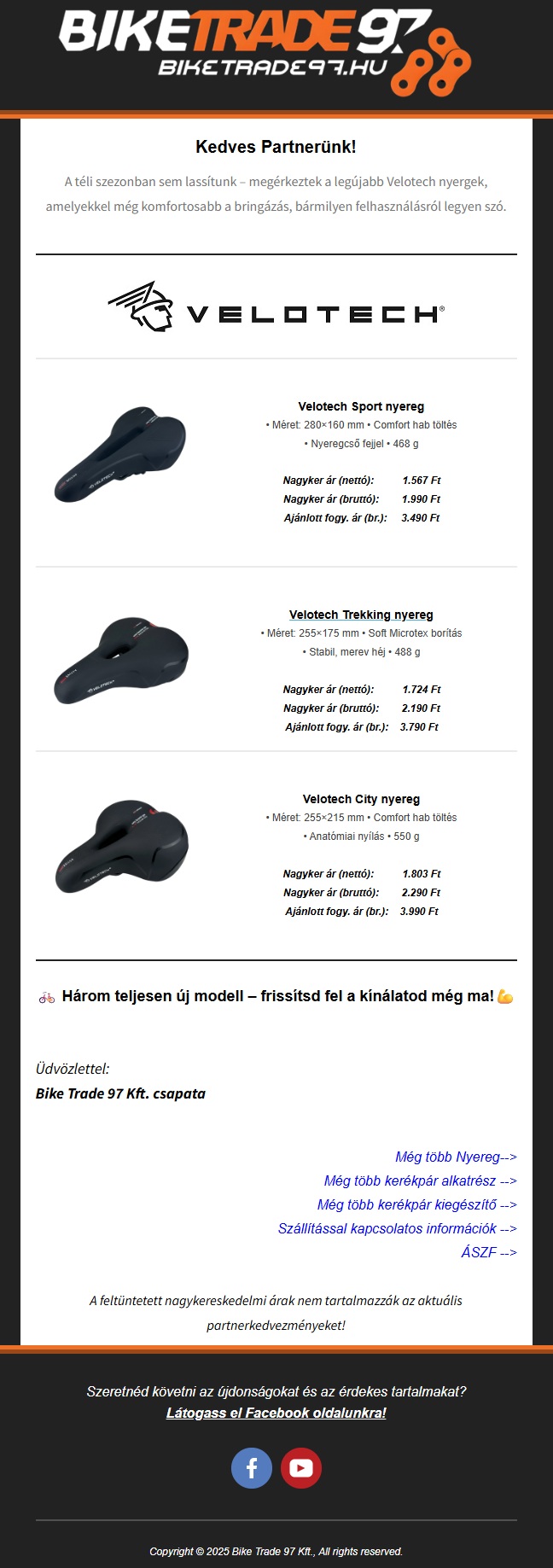 A téli szezonban sem lassítunk – megérkeztek a legújabb Velotech nyergek, amelyekkel még komfortosabb a bringázás, bármilyen felhasználásról legyen szó.